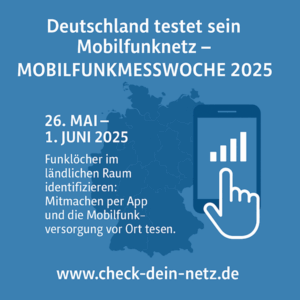 Vom 26. Mai bis zum 1. Juni 2025 findet die Mobilfunkmesswoche statt, die dazu dient, Funklöcher im ländlichen Raum zu identifizieren.