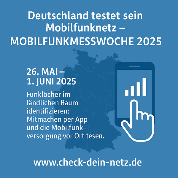 Mobilfunk ist im ländlichen Raum nicht nur ein Kommunikationsmittel, sondern ein entscheidender Faktor für wirtschaftliche Entwicklung, Lebensqualität und Zukunftsfähigkeit. Die erste bundesweite Mobilfunkmesswoche soll dazu beitragen, die Netzabdeckung in Deutschland transparenter zu machen und gezielte Verbesserungen anzustoßen.