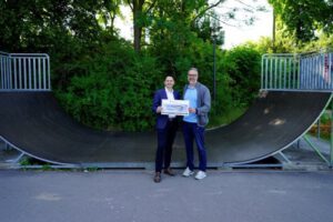 Gute Nachrichten für sportbegeisterte Jugendliche und junge Erwachsene in Altenburg: Die Halfpipe auf dem beliebten Skaterplatz am Großen Teich ist wieder in Schuss! Möglich wurde die dringend benötigte Reparatur durch eine Spende der Sparkasse Altenburger Land, die dafür 2.700 Euro zur Verfügung stellte.