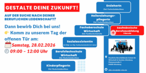 Die Staatliche Berufsbildende Schule Wirtschaft und Soziales (SBBS WISO) Altenburg lädt am Samstag, dem 28. Februar 2026, von 09:00 bis 12:00 Uhr herzlich zum Tag der offenen Tür ein.