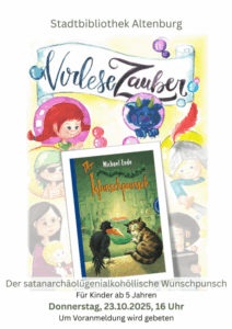 Geschichten können verzaubern – besonders, wenn sie lebendig vorgelesen werden. Am Donnerstag, dem 23. Oktober 2025, findet ab 16 Uhr wieder der beliebte „Vorlesezauber“ in der Stadtbibliothek Altenburg statt. Die monatliche Veranstaltungsreihe richtet sich an Kinder ab fünf Jahren und steht diesmal ganz im Zeichen der Fantasie und des Humors.