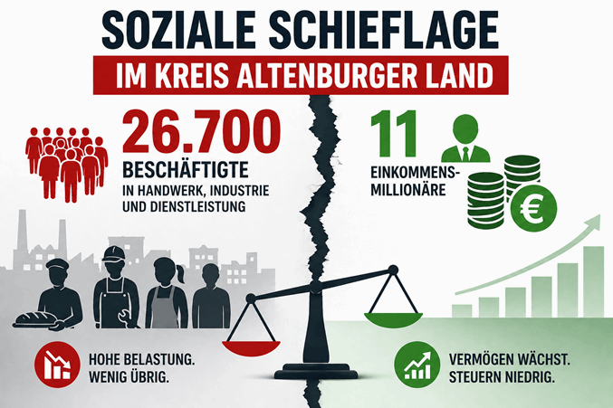 Die Gewerkschaft Nahrung-Genuss-Gaststätten (NGG) Thüringen warnt vor einer wachsenden sozialen Schieflage im Altenburger Land. Nach Angaben der Gewerkschaft stehen im…