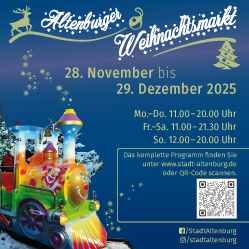 Erstmals lädt die Stadt am 10. Dezember zum „Altenburger Weihnachtssingen“ ein. Unter der Leitung von Thomas Wicklein, 1. Kapellmeister des Theaters Altenburg Gera, erklingen moderne und traditionelle Weihnachtslieder zum Mitsingen.